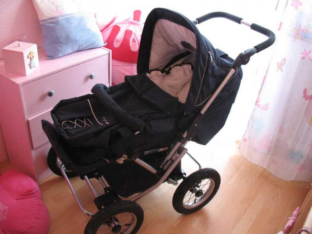 Luxuskombikinderwagen der Firma Emmaljunga Einer der besten Kinderwagen, den es auf dem Weltmarkt gibt. Dieser Kinderwagen ist im schicken zeitlosen dunkelblau. Für Jungen und Mädchen gleich gut geeignet.