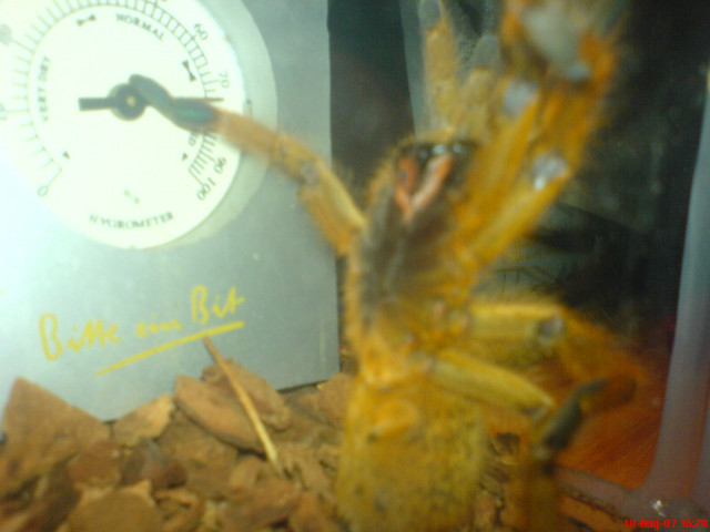 Ich verkaufe hier meine Rote Usamburavogelspinne da ich umgezogen bin und jetzt leider keinen platz mehr für sie habe!!!!